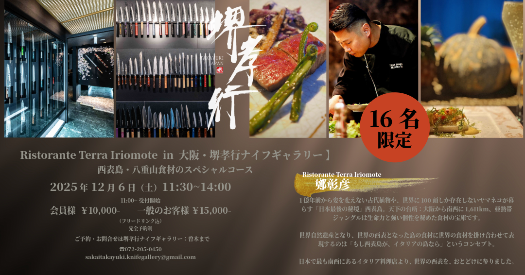 From this place we will promote the fascination of Sakai Takayuki to the world through various events with premier chefs and craftsmen.